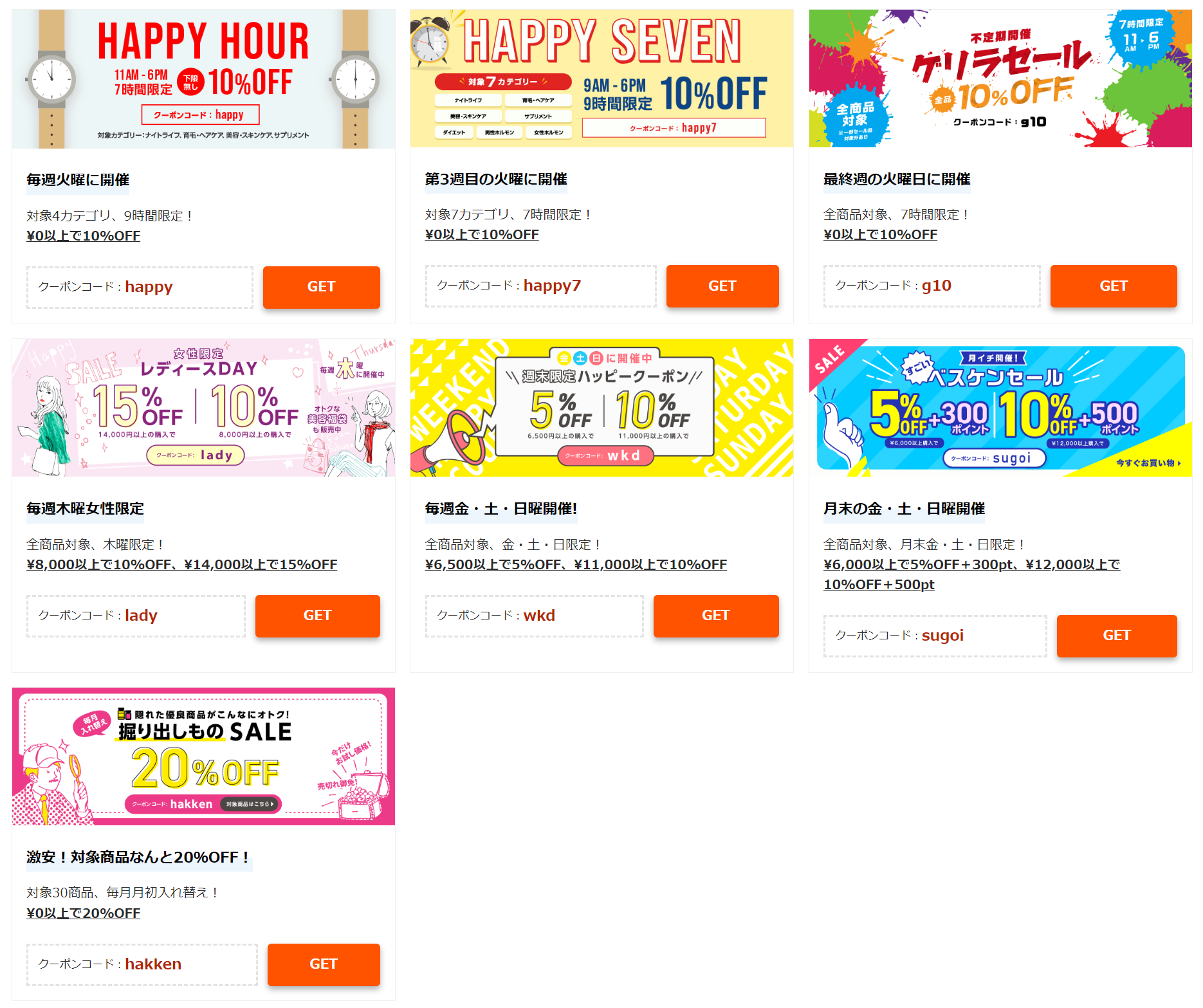 ¥6,500以上で5%OFF、¥11,000以上で10%OFF